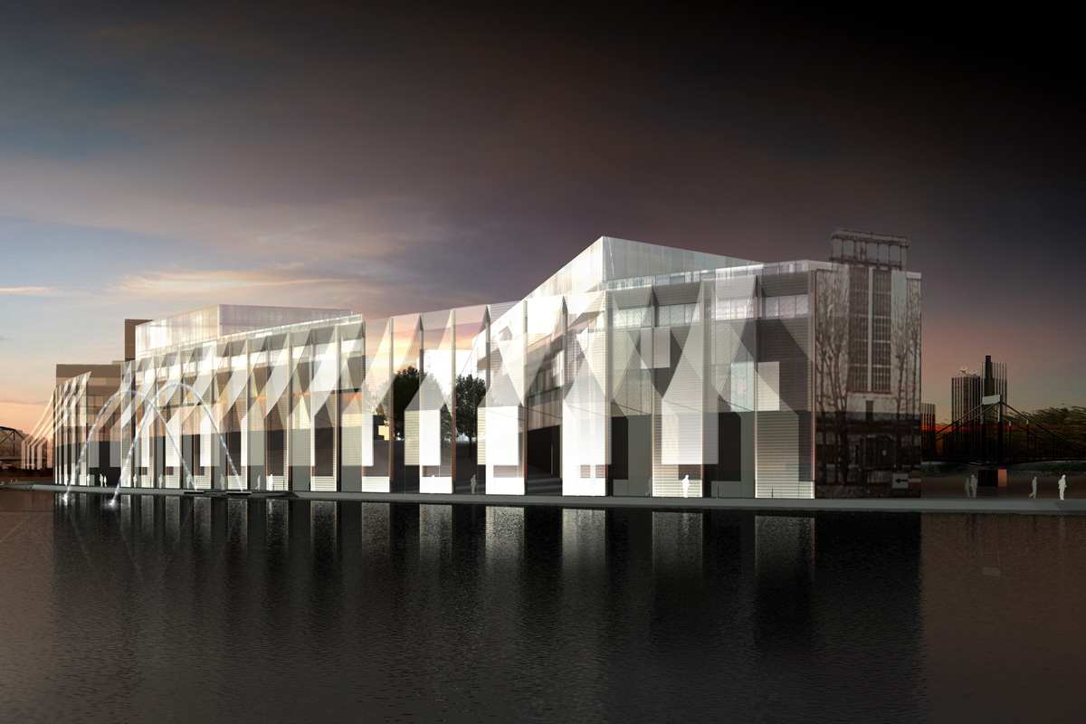 site area 123 000 m² facade 1 400 m coating facade (960 ml building, 440 ml public space), 11 m height, 12 000 m² facade, 21 620 m² metallic tissue