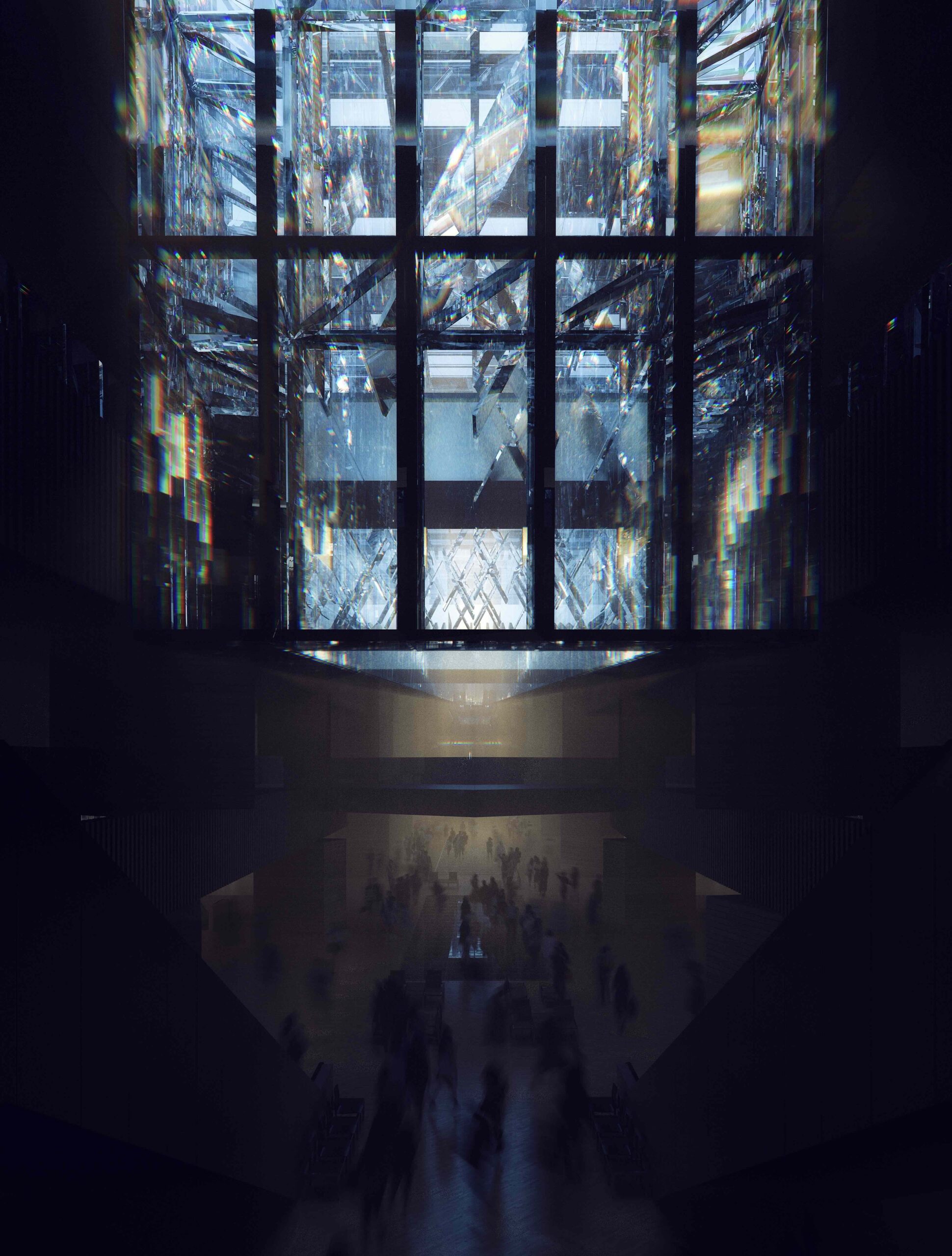 Ce projet ambitieux superpose des logements sociaux et un hôtel sur un socle de bureaux : la structure se compose d’un assemblage de cubes empilés, reliés par une plateforme oblongue et aérienne, marquant la transition entre le programme hôtelier et le domaine résidentiel. Cette composition de volumes en équilibre confère au bâtiment une dynamique sculpturale, renforcée par un jeu de matérialités : selon les façades, la brique varie en tonalités blanches, grises ou brunes. Pour capter la lumière du nord et inscrire les logements dans leur environnement, de fins volumes en métal poli miroir se greffent perpendiculairement aux parois verticales, démultipliant les reflets et prolongeant le paysage au sein même des espaces intérieurs.